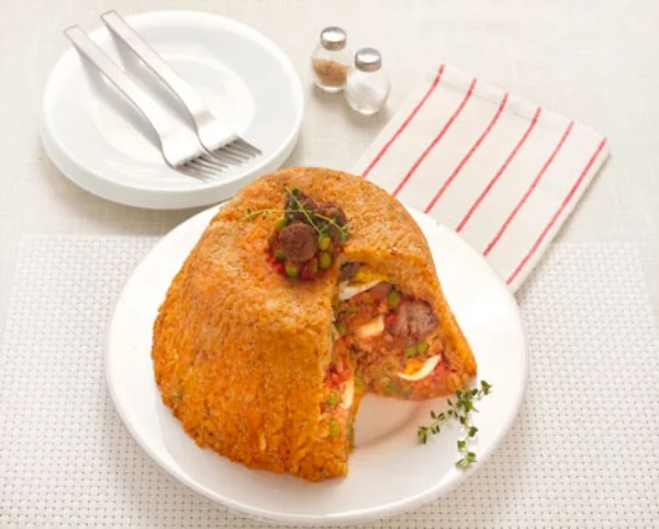 Sartù קלאסי - מאכל אורז מעוצב, ממולא ועשיר במרכיבים וטעמים.